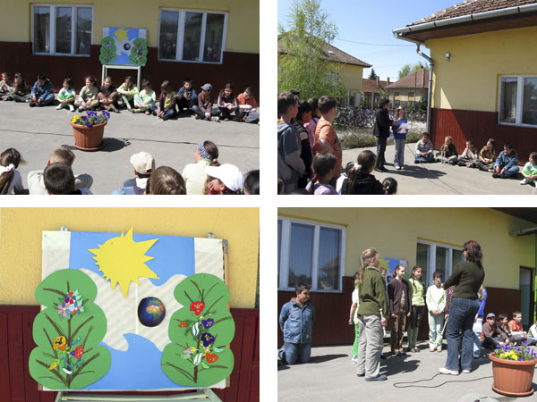 A díszletet a napközisek készítették el, ami mindenki tetszését elnyerte. A műsor végén tartottam egy kis kiegészítést a naphoz kapcsolódóan, ami arról szólt, hogy mi kis emberek mit tehetünk Földünk jövőjéért.
