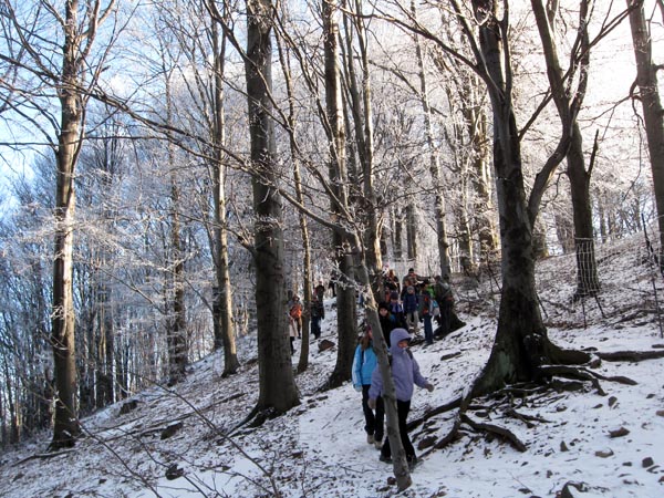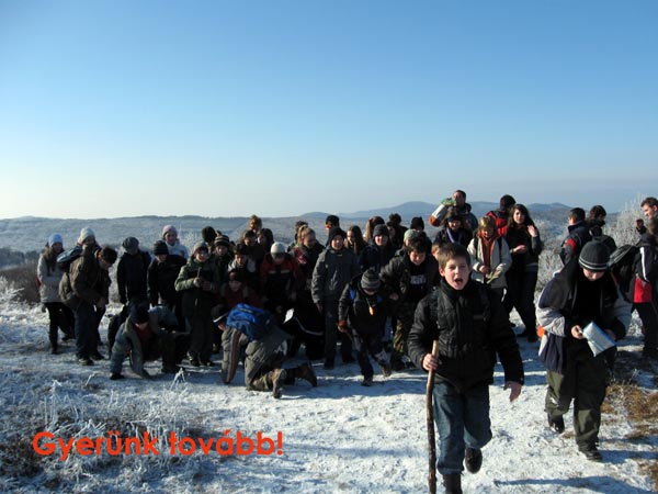 Január 16-án, 52 Tekergő indult el, hogy teljesítse a Galyatetőtől Tarig húzódó 18 km hosszú Emléktúrát. A korai kelés, a sokszori átszállás után alig vártuk már, hogy leszálljunk hazánk második legmagasabb csúcsánál( 965 m ). A természeti környezet szépsége örökre megmarad mindenkinek az emlékezetében. Idillikus téli tájban gyönyörködhettünk. Verőfényes, kék égbolt, a tüdőt kitisztító hegyi levegő, a fákat, fenyőket lepelként beborító dér, a talajt vékony fátyolként beborító hó ejtett ámulatba minket. A csak 100 m-es szintemelkedés könnyű túrát ígért. De a hóréteg alatti jégbordák, a le-lemaradó csapatok, s egy harminc perces eltévedés, az ágasvári turistaháznál gondolkodóba ejtett minket. Két óránk maradt a tari vonat indulásáig, volt 8-9 km hátra, ha sietünk, akkor nem kell két órát várni az állomáson. Így megkezdtük az erőltetett menetet egy erdőirtáson, jég borította pocsolyákon, s a kígyózó patakon át-átugrálva . Huszonhatan elérték a vonatot, a többiekkel a lecsupaszított állomáson várakoztunk. A didergés sem űzte el emlékezetünkből a Péter-hegyese kilátói panorámát, a havas tájat, a Csörgő-patakvölgy szépségét, a m átraszentistváni sípályát, s a tari csevicét.